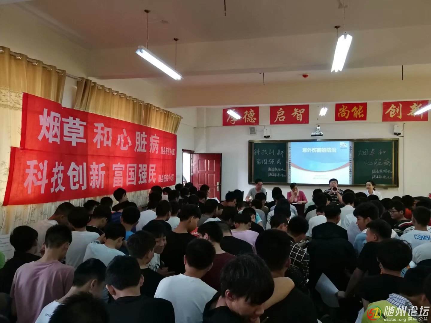 ‘隨州論壇’訊:通訊員程興容 陳洪英 徐巧、特約記者豫南楚民報(bào)道: 為提高全縣居民群眾的健康素養(yǎng)水平,強(qiáng)化科技創(chuàng)新 ,富國(guó)強(qiáng)民理念,普及健康知識(shí),創(chuàng)造健康的生活環(huán)境,促進(jìn)全縣精神文明的建設(shè),值此2018年5月科技活動(dòng)周和5月31日“世界無(wú)煙日”活動(dòng)到來(lái)之機(jī),隨縣疾控中心組成巡講團(tuán)深入校園開展健康巡講活動(dòng)。 5月29日,縣疾控健康教育巡講團(tuán)聯(lián)合縣職教中心來(lái)到隨縣職業(yè)教育中心學(xué)校,現(xiàn)場(chǎng)設(shè)置控?zé)熣古?塊,懸掛宣傳橫幅,發(fā)放宣傳核心信息及折頁(yè)600余份。以“煙草和心臟病”為主題,開展了“拒吸第一支煙 做不吸煙新一代”宣誓和簽名活動(dòng)。 巡講團(tuán)成員:縣疾控健康教育和促進(jìn)科科長(zhǎng)陳洪英、科室工作人員徐巧分別講解了“意外傷害的防治”、“煙草和心臟病”科普知識(shí)?,F(xiàn)場(chǎng)氣氛十分熱烈,參加聽課的250余名學(xué)生,積極配合,踴躍發(fā)言,并當(dāng)場(chǎng)填寫了巡講調(diào)查問(wèn)卷。 同時(shí),現(xiàn)場(chǎng)還以搶答正確獎(jiǎng)勵(lì)小零食豐富多彩形式、激勵(lì)學(xué)生學(xué)習(xí)興趣。此次控?zé)熃】笛仓v活動(dòng)讓全體學(xué)生非常直觀的了解到吸煙的危害及戒煙的好處,普及了健康教育知識(shí),得到了廣大師生的一致好評(píng)。提高了學(xué)生對(duì)煙草的認(rèn)識(shí),養(yǎng)成健康的生活習(xí)慣,促進(jìn)學(xué)生健康成長(zhǎng);進(jìn)一步提升了青少年對(duì)控?zé)煹年P(guān)注,也讓每一位學(xué)生知道如何愛惜自己,關(guān)心他人的健康。 ![]() ![]() |