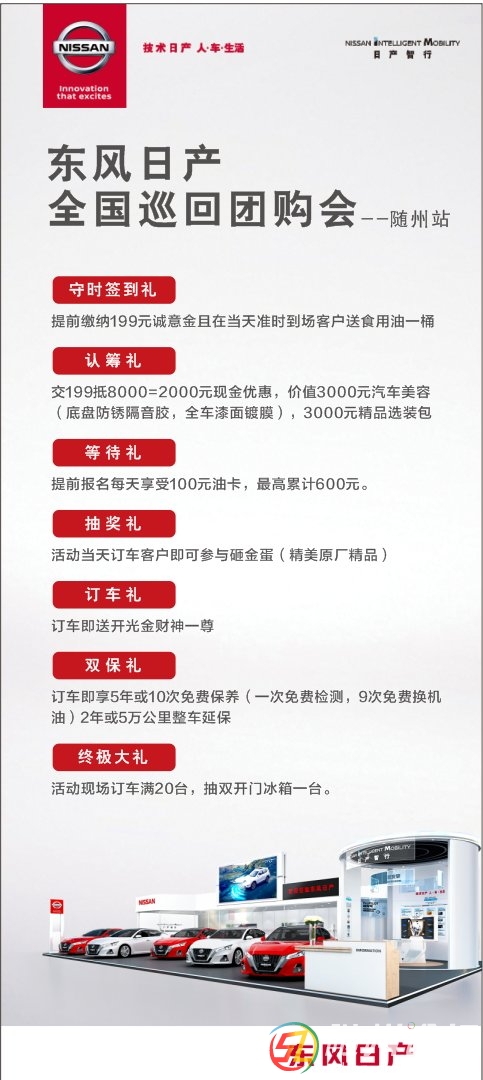 一直在觀望價格的您 該出手了!錯過了各種節(jié)日確定還要錯過全國巡回團(tuán)購會嗎?因為是直銷 省錢 直銷+團(tuán)購 省錢+省錢全國巡回 省錢+省錢+省錢 9月19日-20日NISSAN 99購車節(jié)特惠 ...
