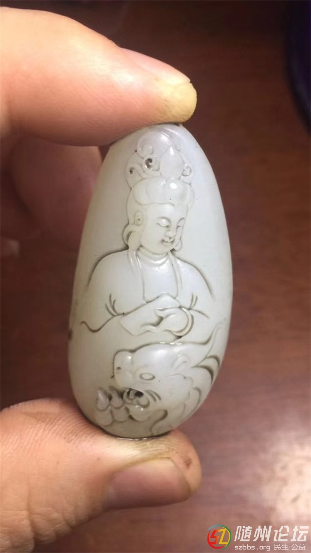 新鮮出爐籽料觀音,白度羊脂背部留有原皮,重25克46*23*17