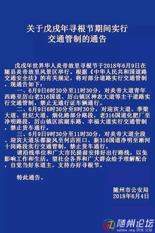 正文摘要:本帖最后由 知足而樂 于 2018-6-5 14:30 編輯 隨州論壇訊:為了當(dāng)好東道主,辦好尋根節(jié)。2018年6月9日,隨州公安局將對這些道路實行交通管制。 ... |