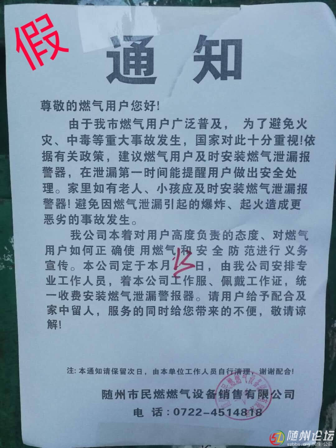 前幾天就有人拿著這個(gè)通知 到我家去,說的普通話,說樓下每戶都安裝了報(bào)警器,一家290元,我說不安,他立碼把通知收起來,問他要一張都不給,還說樓下早就貼有的通知,后來經(jīng)過小區(qū)看了一圈都沒看到這樣的通知 |