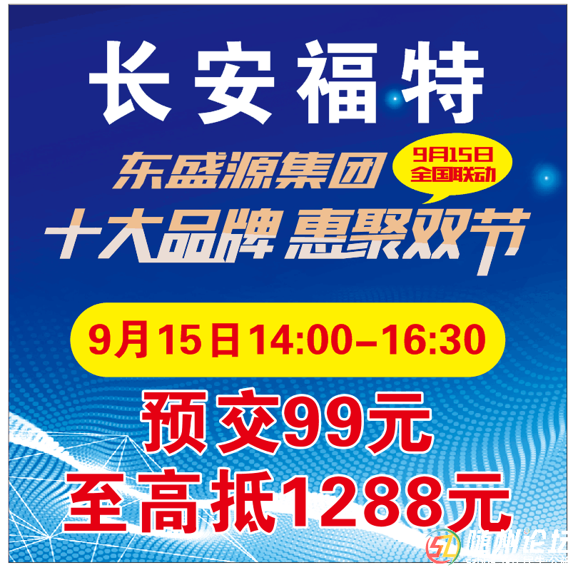 | 倒計時?2天 915東盛源集團--十大品牌 惠聚雙節(jié) 預(yù)交99元拼團至高抵1288元購車款 前十名搶訂送500元油卡 只為9月15日沖量!沖量!沖量! 驚喜多多,等你來 |