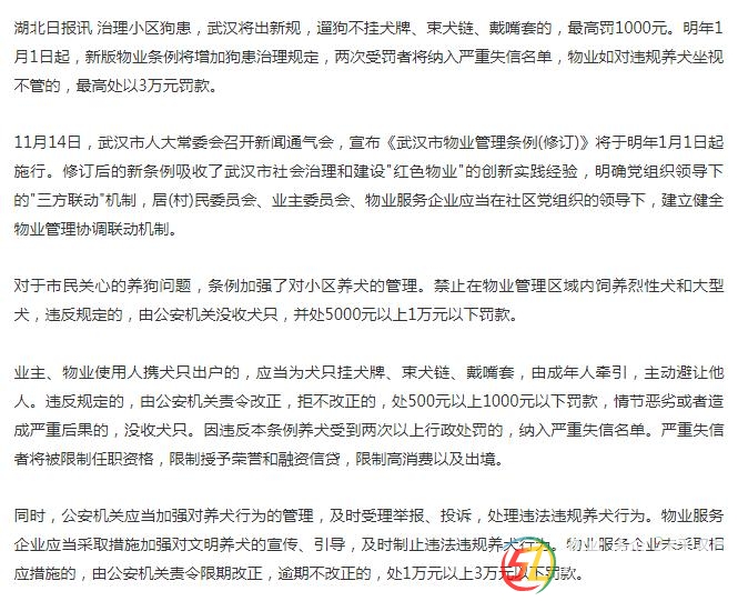武漢小區(qū)對遛狗不戴嘴套最高罰千元的作法非常好,隨州應該效仿。 |