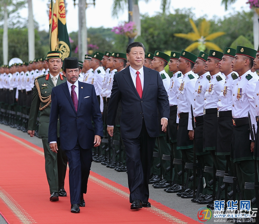 [url=] [/url] 11月19日,國家主席習(xí)近平在斯里巴加灣同文萊蘇丹哈桑納爾舉行會談。會談開始前,習(xí)近平出席哈桑納爾在王宮前廣場舉行的盛大歡迎儀式。這是在哈桑納爾陪同下,習(xí)近平檢閱儀仗隊。 新華社記者 鞠鵬 ...