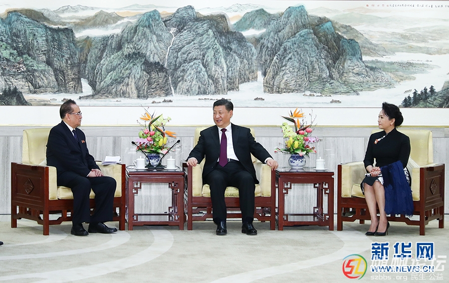 1月27日,中共中央總書記、國家主席習(xí)近平和夫人彭麗媛在北京會見以朝鮮勞動黨中央政治局委員、中央副委員長、國際部部長李洙墉為團(tuán)長的朝鮮友好藝術(shù)團(tuán)。 新華社記者 謝環(huán)馳 攝 新華社北京1月27日電(記者 ...