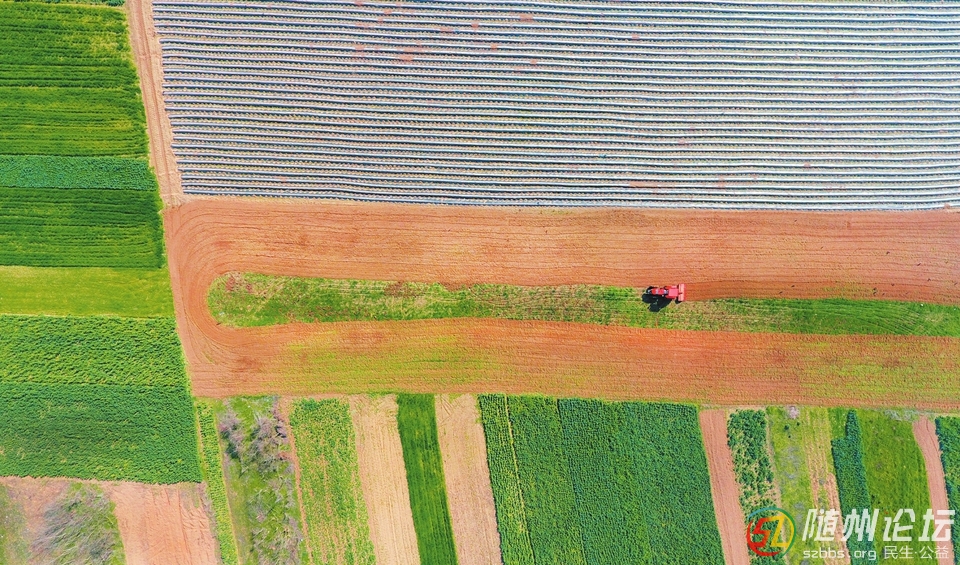 春回大地,生機(jī)盎然。田園如同一幅錦緞。圖為隨州高新區(qū)淅河鎮(zhèn)余家畈,農(nóng)民駕駛拖拉機(jī)翻耕土地。(隨州論壇全媒體記者 徐斌攝)