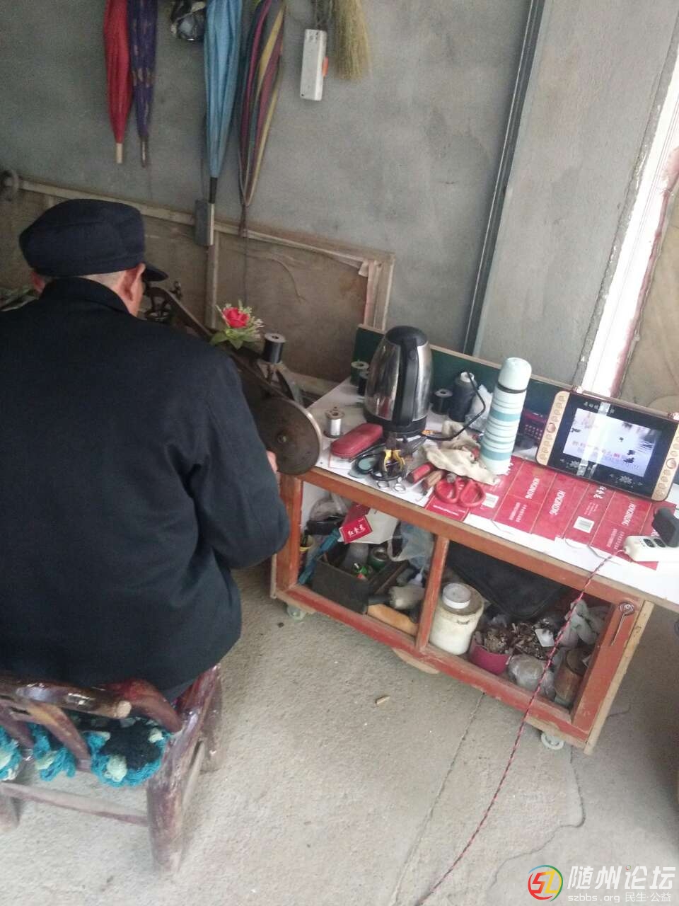 修鞋師傅用上了"隨身聽",好! |