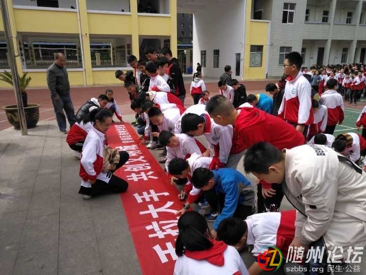 隨州論壇訊 (通訊員 楊麗)4月15日,鐵樹學(xué)校2300余名師生在學(xué)校操場舉行了“深化文明城市創(chuàng)建,開展城鄉(xiāng)環(huán)境秩序集中整治活動(dòng)”啟動(dòng)儀式、師生簽名活動(dòng)。 啟動(dòng)儀式上少先隊(duì)員魏欣妍 ...