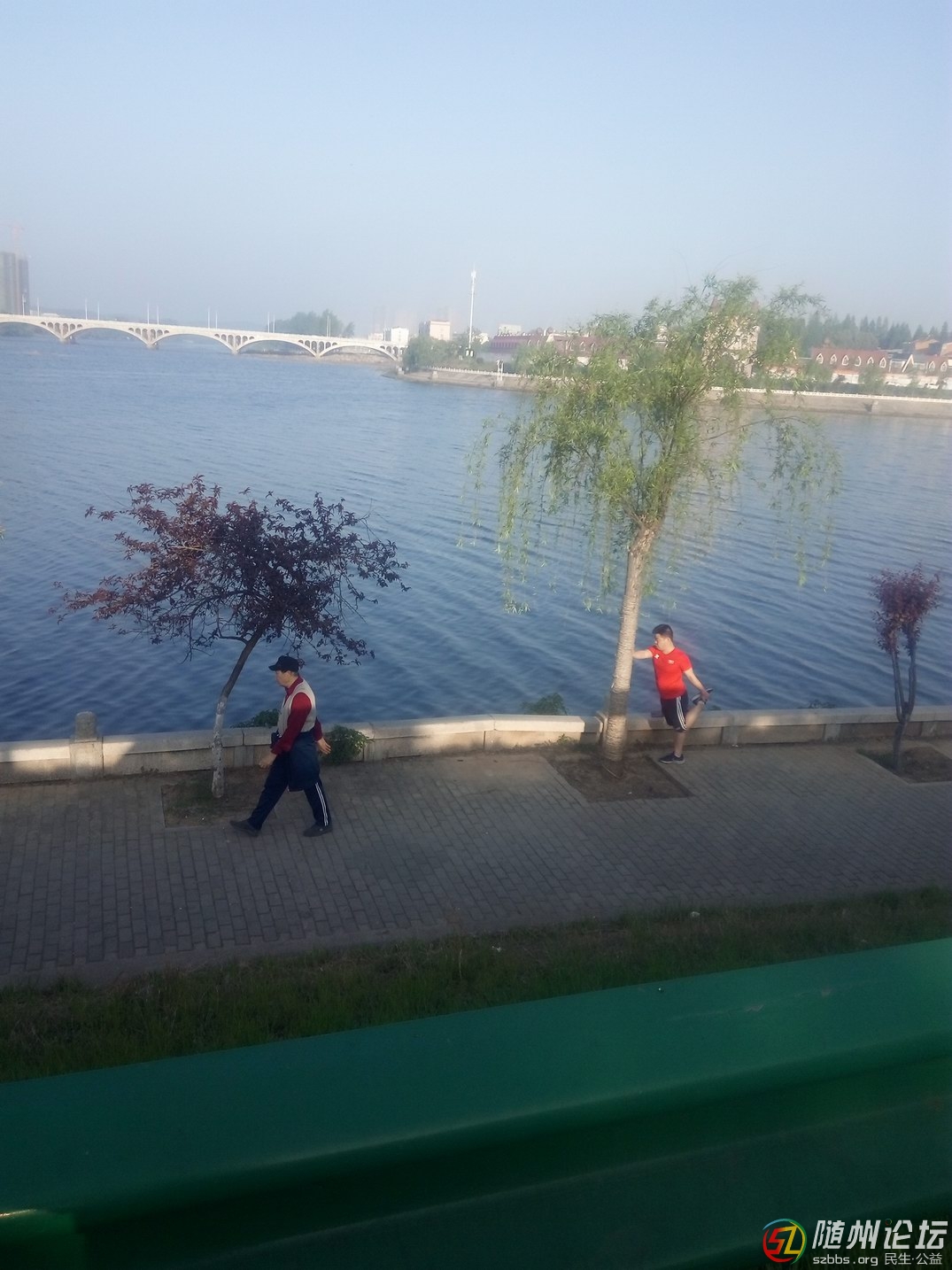 昨天4.17拍的。我發(fā)現(xiàn)晨練的男人比女人多。 這個男人倚著樹練習。