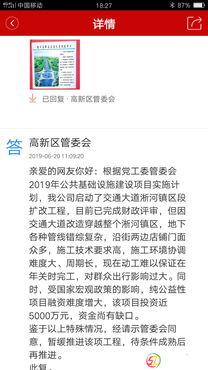 謝謝淅河政府的回復。為淅河政府重視民生問題點贊! |