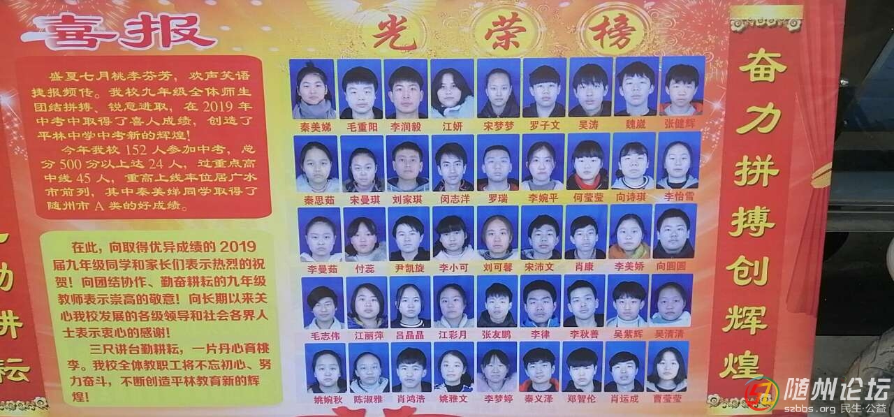 正文摘要:“盛夏七月桃李芬芳 歡聲笑語捷報(bào)頻傳”,廣水市長嶺鎮(zhèn)平林中學(xué)九年級全體師生團(tuán)結(jié)拼搏,銳意進(jìn)取,在今年中考中取得了喜人成績,創(chuàng)造了平林中學(xué)中考新的輝煌!見圖。據(jù)了解,平林中學(xué)今年 ... |