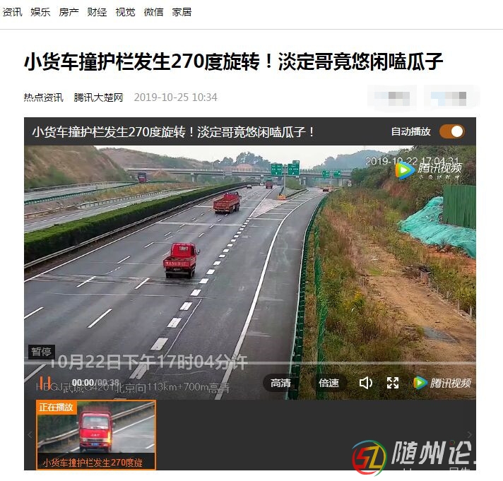 10月22日下午17時04分許,在武漢繞城高速北京向113KM+100M處,一紅色小貨車因經過分道路口時速度過快,猛然減速時發(fā)生打滑,以致撞上中央護欄,車輛十分驚險的發(fā)生270度旋轉,隨即停在超車道上。司機發(fā)現車子橫 ...