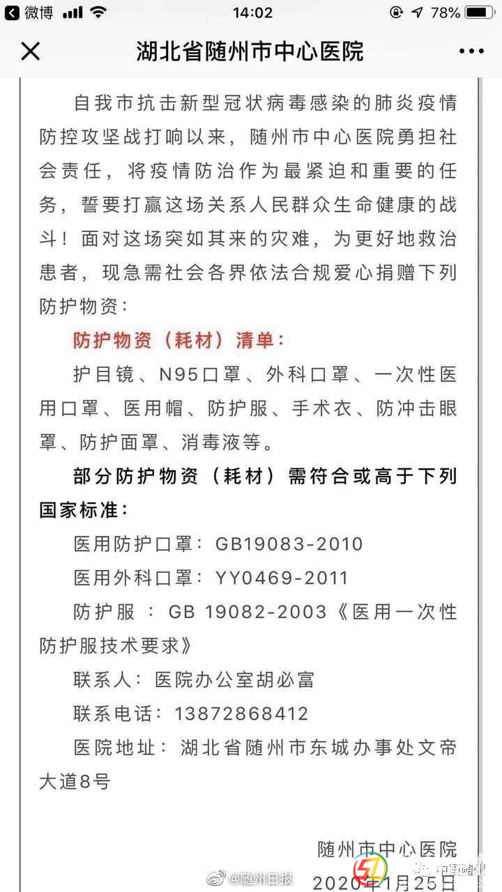 隨州各醫(yī)院急需防疫物資捐助 $ P+ T+ M' V! H+ m5 ^, Z ' j; C0 p2 P' X( W N6 k- u ' F: v$ Q4 B1 p. e8 ^( `6 a1 Z