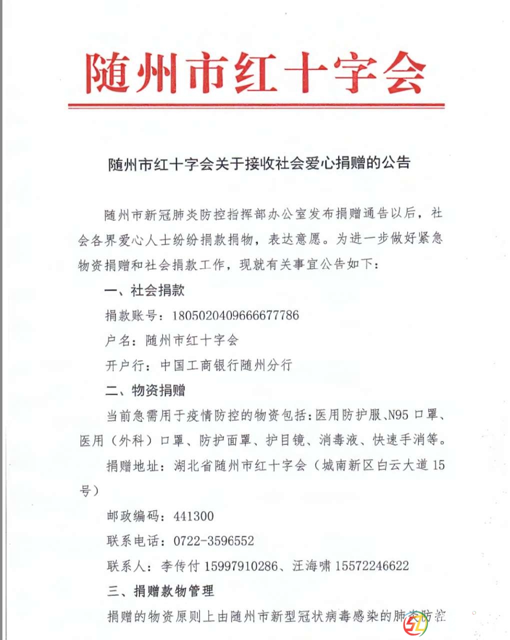 隨州市紅十字會(huì)關(guān)于接收社會(huì)愛心捐贈(zèng)的公告