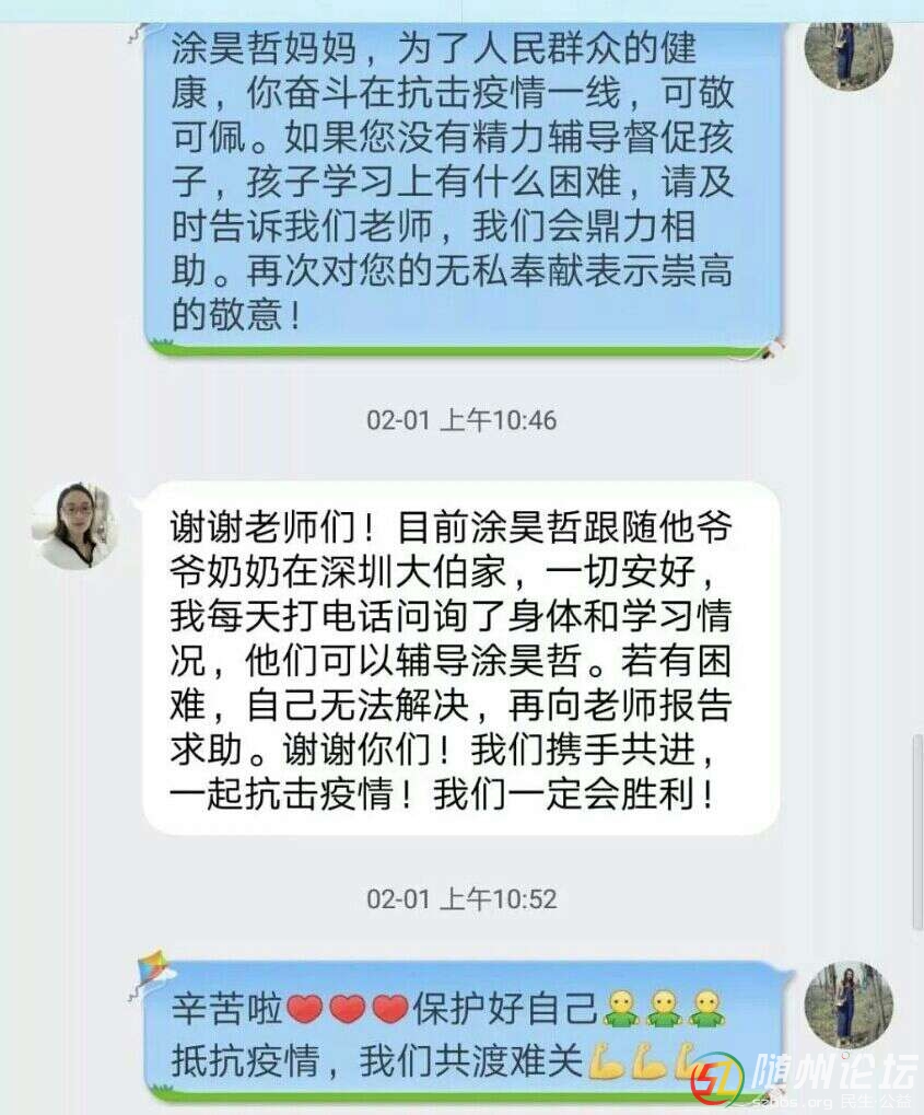 隨州論壇訊 面對(duì)突如其來(lái)的新冠肺炎疫情,醫(yī)護(hù)人員日夜悉心照顧患者,然而他們的孩子又由誰(shuí)來(lái)守護(hù)?曾都區(qū)白云湖學(xué)校迅速擔(dān)當(dāng)責(zé)任,組織全體教師投入“關(guān)愛(ài)一線醫(yī)護(hù)子女”行動(dòng) ...
