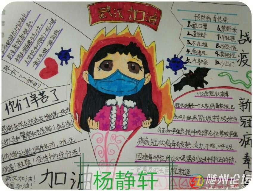 隨州論壇訊 (通訊員 黃加強(qiáng))寒假期間,新型冠狀病毒感染的肺炎疫情,牽動(dòng)了無數(shù)國人的心。曾都區(qū)清河路學(xué)校的孩子們在家做好自我防護(hù)的同時(shí),大家積極行動(dòng)起來,創(chuàng)作了一幅幅抗擊新型冠 ...