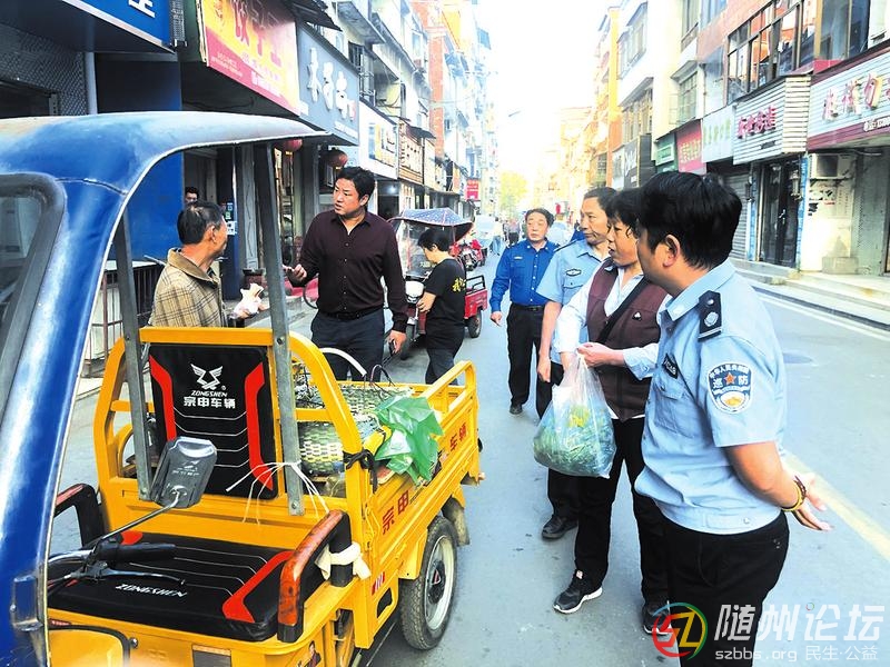曾都區(qū)西城辦事處雙龍寺社區(qū)加強轄區(qū)背街小巷環(huán)境秩序整治,保持干凈整潔有序,助力文明城市建設。圖為巡邏專班對隨意賣菜的小販進行勸導。(隨州日報通訊員冷紅娟攝) ...