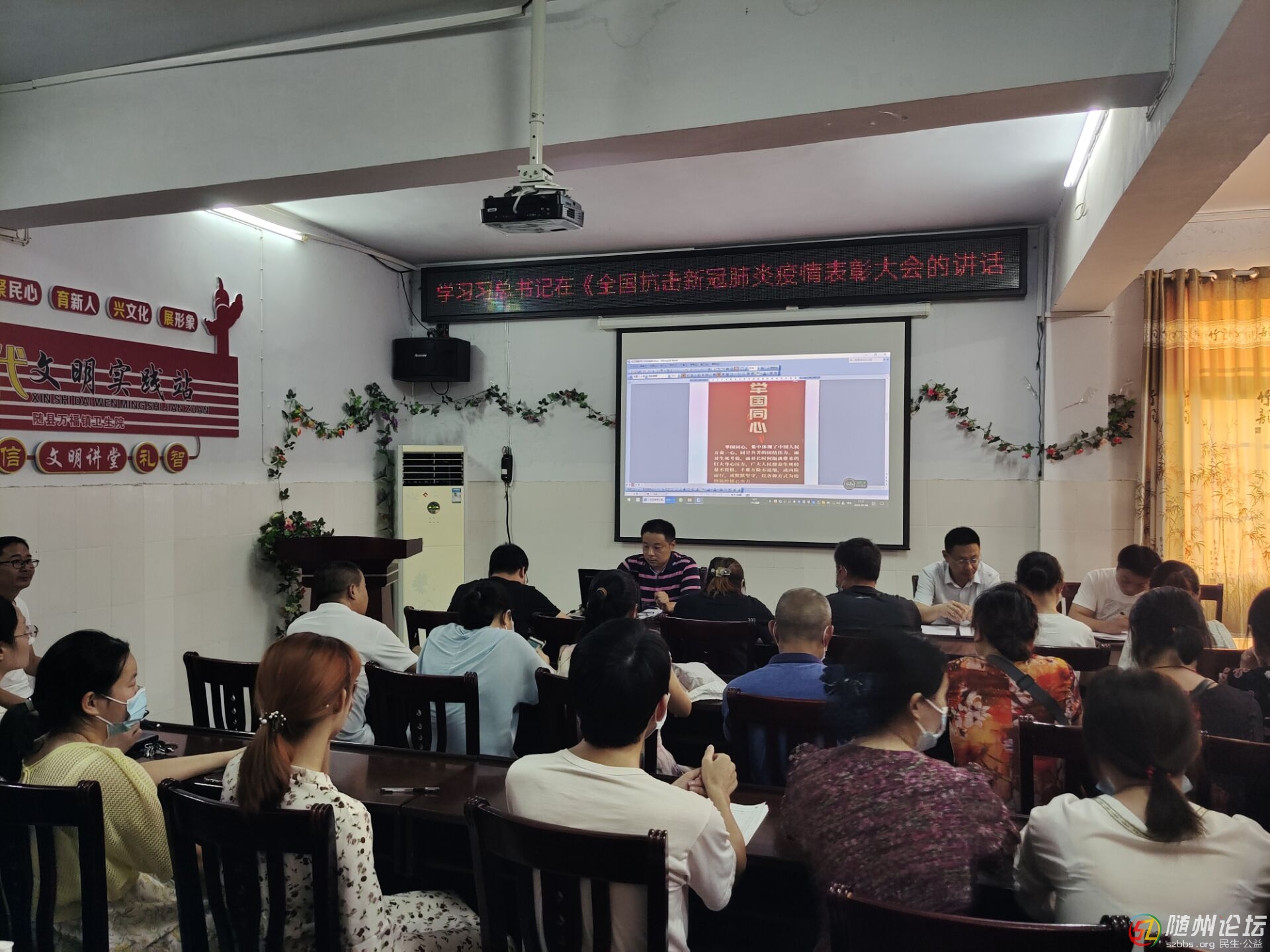 9月8日晚上六點(diǎn)隨縣萬福鎮(zhèn)衛(wèi)生院全體醫(yī)務(wù)人員在四樓大會(huì)議室一起學(xué)習(xí)習(xí)總書記在全國(guó)抗擊新冠肺炎疫情表彰大會(huì)的講話。 在這場(chǎng)同嚴(yán)重疫情的殊死較量中,中國(guó)人民和中華民族以敢于斗爭(zhēng)、敢 ...
