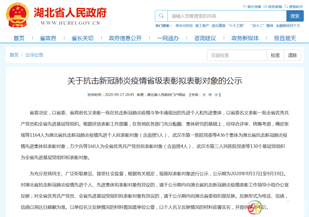 本帖最后由 隨州日報 于 2020-9-18 15:22 編輯 , N4 W9 T. u& B% F. y% [ 6 o! `% Q) U! F5 z 重磅!剛剛,湖北發(fā)布抗擊新冠肺炎疫情省級表彰擬表彰對象,湖北省抗擊新冠肺炎疫情先進個人擬表彰對象1164人湖北省抗 ...