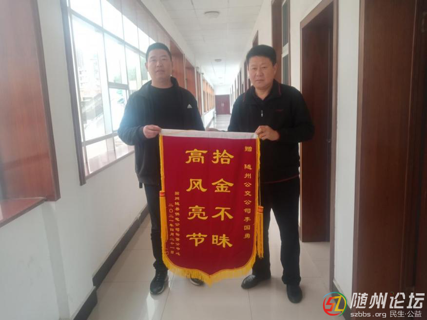 傳遞正能量!乘客送錦旗點(diǎn)贊3路李國(guó)勇拾金不昧 拾金不昧是中華民族的傳統(tǒng)美德。4月22日下午,在市公交公司辦公室內(nèi),隨縣供電局員工童先生和兩名同事一起,將印有“拾金不昧 高風(fēng)亮節(jié)”的錦旗遞到公交公司工作人員手 ...