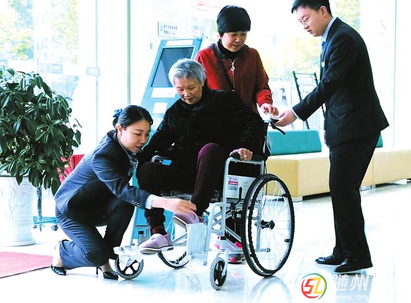 農(nóng)行開發(fā)區(qū)豐匯支行為行動(dòng)不便的老人提供有溫度的服務(wù),得到客戶的好評(píng)。(隨州日?qǐng)?bào)通訊員馬玲何玉軍攝)