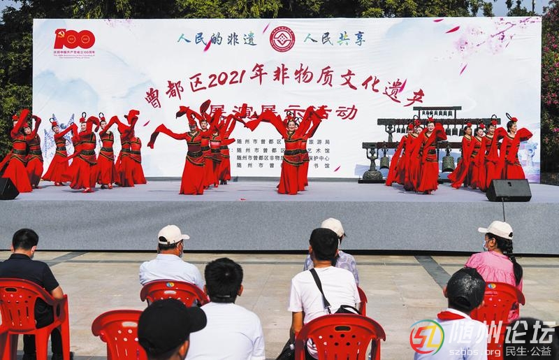 6月2日,曾都區(qū)2021非物質(zhì)文化遺產(chǎn)展演在神農(nóng)公園舉行。該展演靜態(tài)和動態(tài)相結(jié)合,展示了曾都區(qū)非物質(zhì)文化遺產(chǎn)項(xiàng)目。圖為編鐘樂舞《隨州神韻》。(隨州日報(bào)全媒記者孫洪濤攝) ...