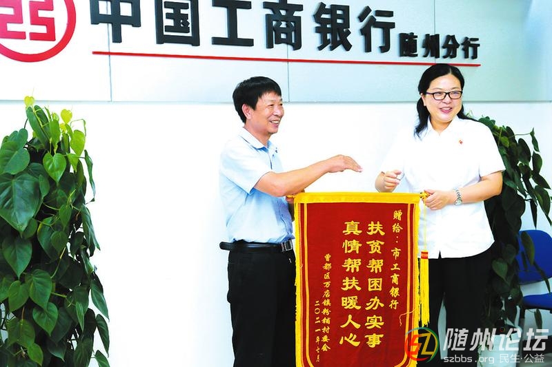 近日,曾都區(qū)萬店鎮(zhèn)粉鋪村主要負(fù)責(zé)人代表村“兩委”向工行隨州分行送來錦旗,感謝該行為全村脫貧攻堅作出的突出貢獻(xiàn)。(隨州日報通訊員何善國攝) ...