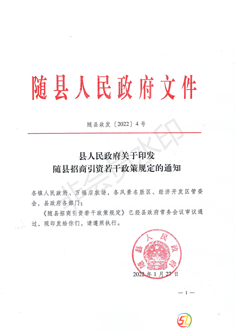 隨縣政府關(guān)于隨縣招商引資若干政策規(guī)定的通知