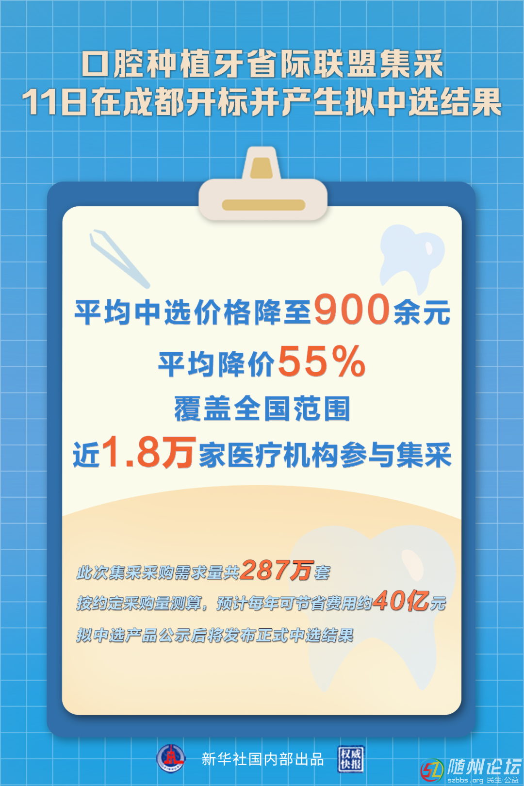 新華社 口腔種植體系統(tǒng)集中帶量采購(gòu)11日在四川成都開標(biāo),產(chǎn)生擬中選結(jié)果,此次集采擬中選產(chǎn)品平均中選價(jià)格降至900余元,與集采前中位采購(gòu)價(jià)相比,平均降幅55%,共有55家企業(yè)參與,其中39家擬中選,中選率71%。 ...