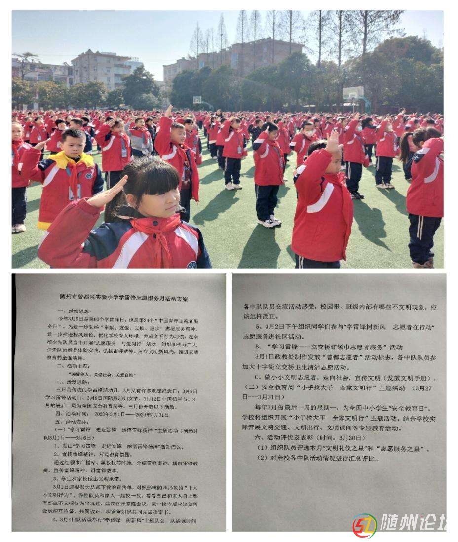 本帖最后由 云起風(fēng)生 于 2023-3-5 18:36 編輯 賡續(xù)紅色血脈踐行時(shí)代使命——曾都區(qū)實(shí)驗(yàn)小學(xué)開(kāi)展“傳承雷鋒精神續(xù)寫(xiě)雷鋒故事”實(shí)踐活動(dòng) 3月5日是第60個(gè)學(xué)雷鋒日,也是第24個(gè)中國(guó)青年志愿者服務(wù)日,為 ...