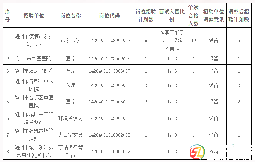 本帖最后由 隨州日?qǐng)?bào) 于 2023-5-13 10:31 編輯 根據(jù)《隨州市事業(yè)單位2023年統(tǒng)一公開招聘工作人員公告》(以下簡(jiǎn)稱《公告》)規(guī)定,現(xiàn)將資格復(fù)審有關(guān)事項(xiàng)公告如下:一、崗位調(diào)整情況部分招聘崗位因參加統(tǒng)一筆 ...