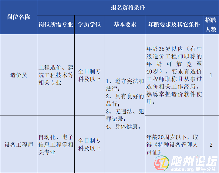隨州市曾都醫(yī)院公開自主招聘公告 因工作開展需要,隨州市曾都醫(yī)院現(xiàn)面向社會公開自主招聘工程造價、設(shè)備維護(hù)專業(yè)技術(shù)人員,現(xiàn)將有關(guān)事項公告如下: 報名時間 2024年7月12日至7月17日 招聘崗位及報名條件 報名 ...