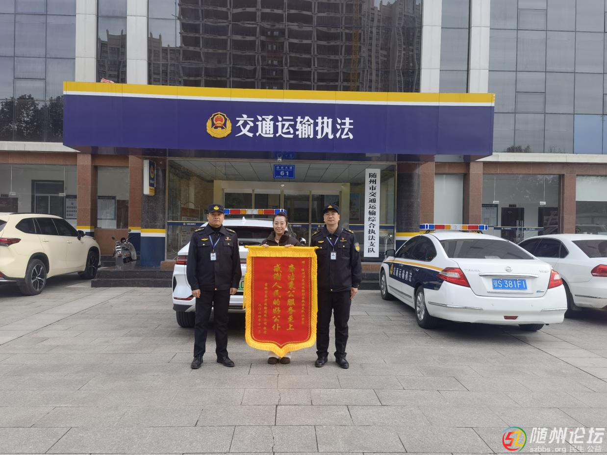 本帖最后由 開心一點(diǎn) 于 2024-12-4 09:31 編輯 11月26日,家住吉林某物流公司的趙女士將一面寫有“廉潔秉公服務(wù)至上,感謝人民的好公仆”的錦旗遞送到隨州市交通運(yùn)輸綜合執(zhí)法支隊(duì)執(zhí)法人員手中,激動的說“多虧你 ...