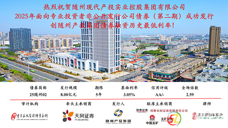 本帖最后由 嗷小喵 于 2025-11-14 11:35 編輯 11月10日,隨州現(xiàn)代產(chǎn)投實(shí)業(yè)控股集團(tuán)有限公司2025年面向?qū)I(yè)投資者非公開發(fā)行公司債券(第二期)成功發(fā)行,本期債券發(fā)行創(chuàng)隨州產(chǎn)投集團(tuán)債券融資歷史最低利率3.05%, ...